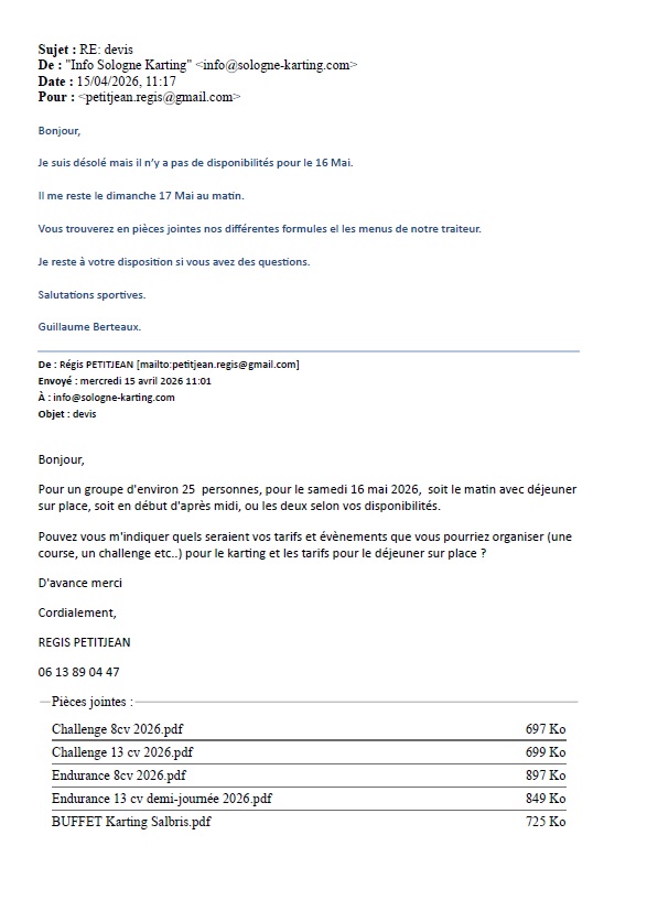 mails Sologne karting
